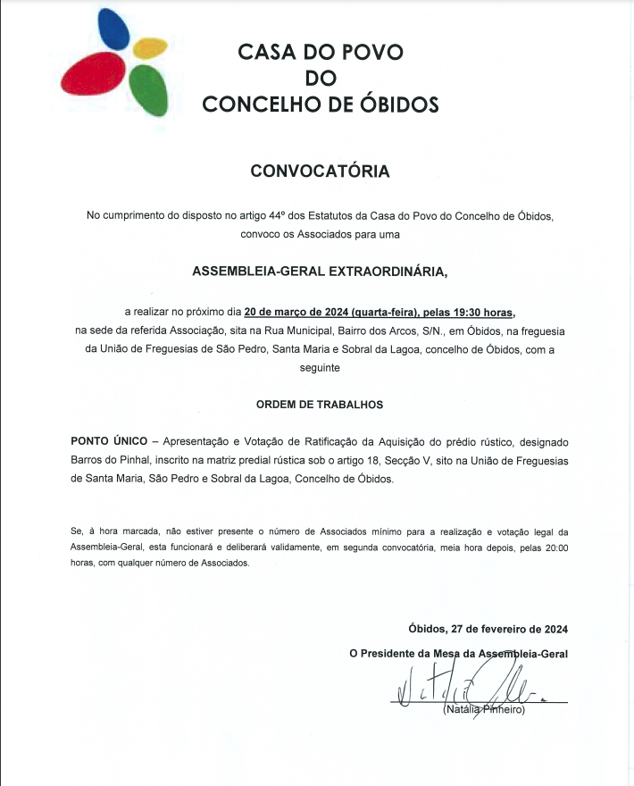 Convocatória Assembleia Geral – Ordinária – 20/03/20024